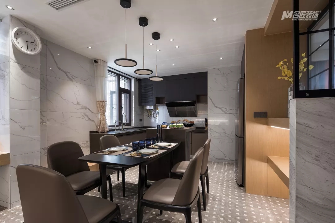 公卫延续了整体轻奢简约的效果,以大理石打底,彰显精致时尚的生活品味。